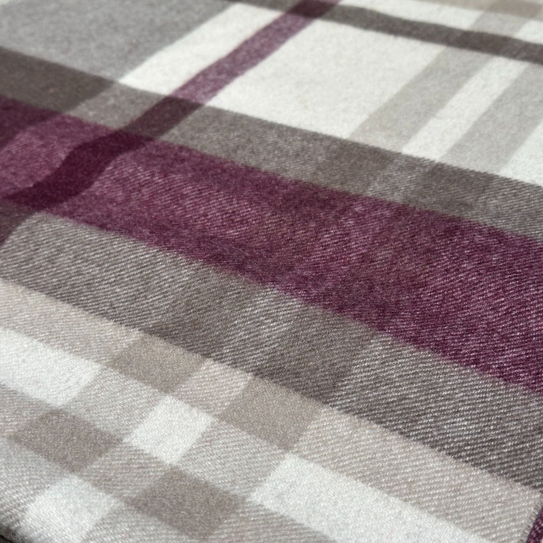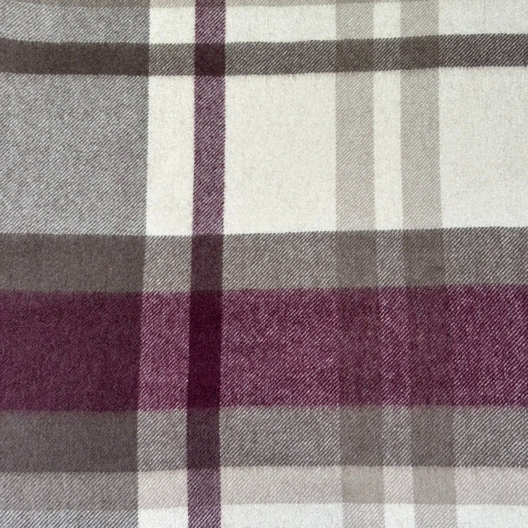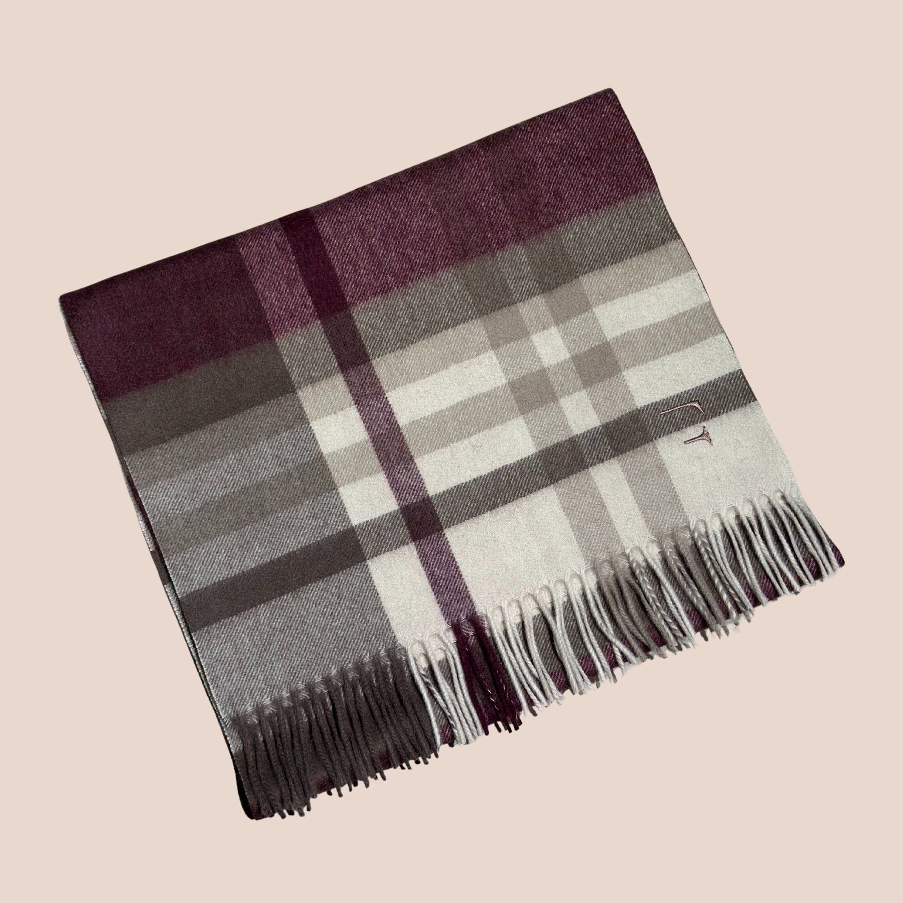 Elegant og tidløst skjerf i rutete kashmir i fargetoner av burgunder, beige, brunt og krem. Skjerfet er laget i 100% ren kashmir, det mykeste naturmaterialet. Kashmirull er et pustende materiale som er supermykt mot huden og holder deg god og varm. De nøye tilpassede målene er med på å gjøre skjerfet perfekt, da det ikke vil bli verken for stort eller for tungt å ha på seg. Skjerfet for deg som verdsetter kvalitet.