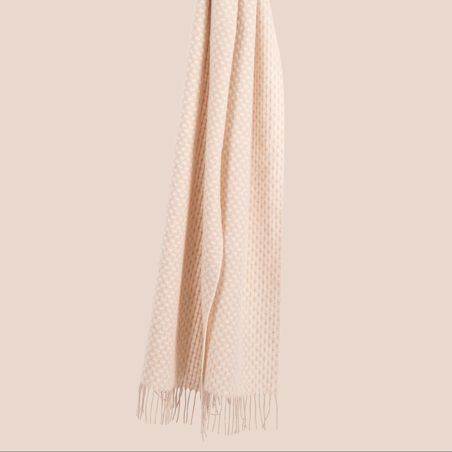 Mykt og behagelig skjerf som er perfekt for kalde dager. Skjerfet er laget i 100% lammeull av beste kvalitet. Designet er elegant prikkete mønster i delikate fargetoner. De nøye tilpassede målene er med på å gjøre skjerfet perfekt, da det ikke vil bli verken for stort eller for tungt å ha på seg. Dette myke skjerfet blir garantert din nye favoritt i høst og vintersesongen🤍